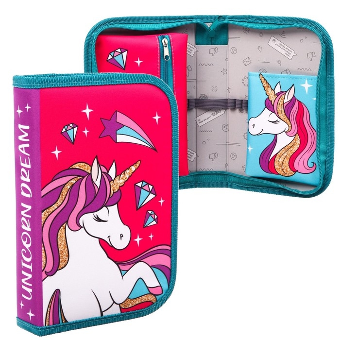 Пенал каркасный, 1 секция, 140х210х40 мм, откидной карман, тканевый, Минни Маус и единорог
