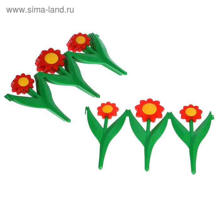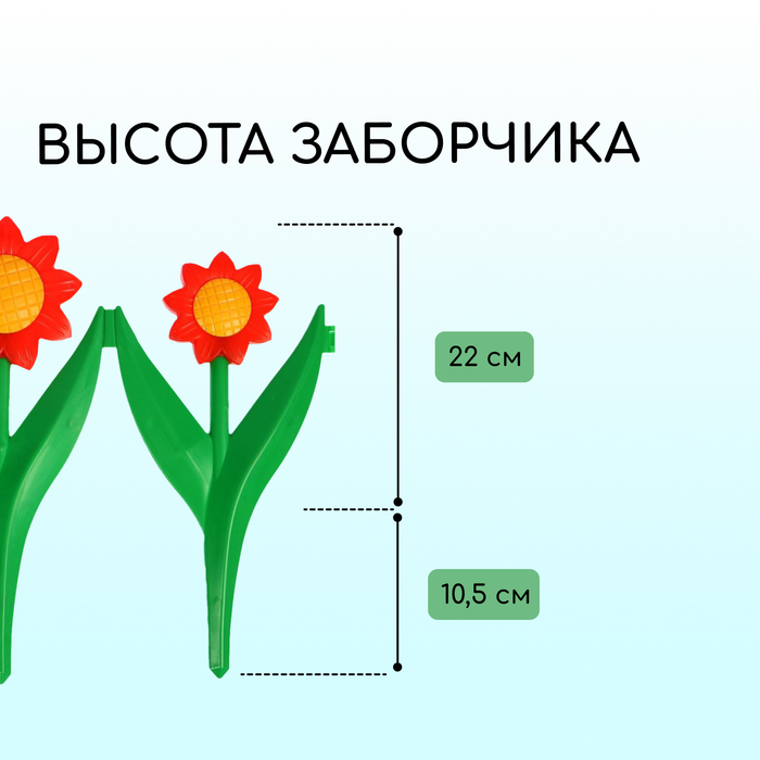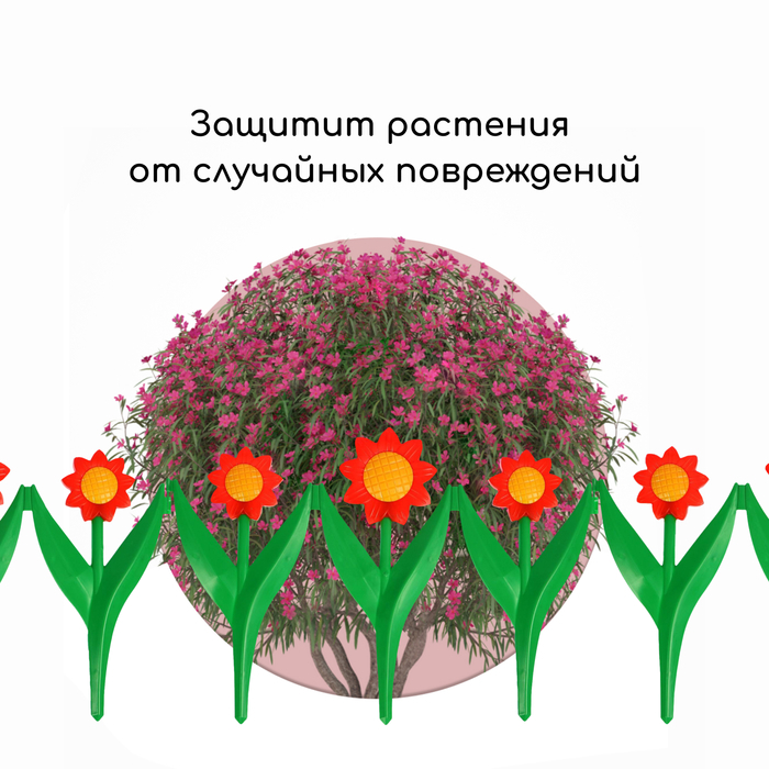 Декоративное ограждение для сада и огорода, 32,5 × 225 см, 5 секций, пластик, красный цветок, «Ромашка»