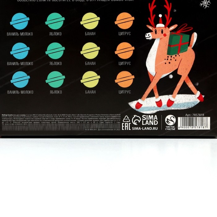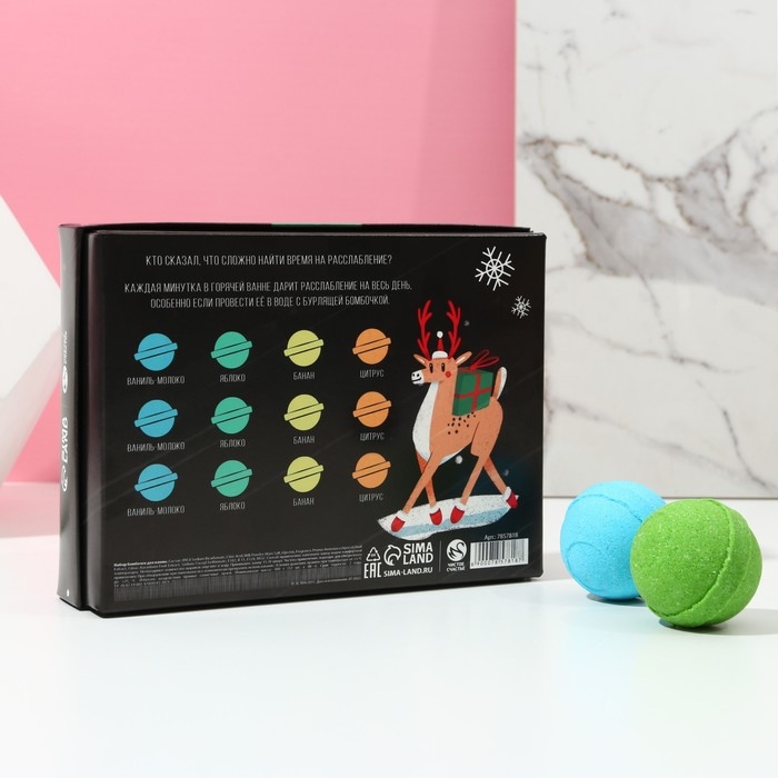Новогодний подарочный набор косметики «С Новым годом!», бомбочки для ванны, 12 х 40 г, ЧИСТОЕ СЧАСТЬЕ