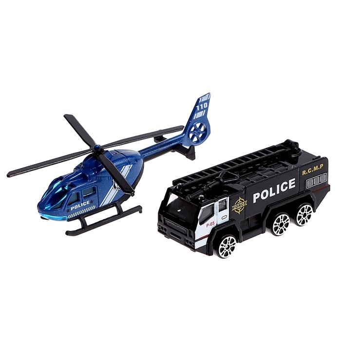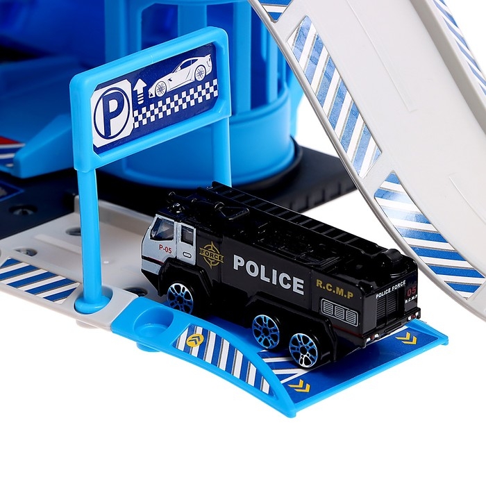Парковка «Полицейский участок», с металлическими машинкой и вертолётом