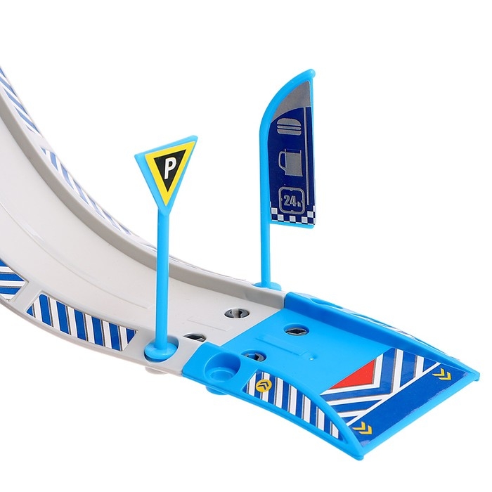 - В комплект входят фрагменты треков с дорожной разметкой и установленными на них дорожными знаками. Поэтому маленький гонщик сможет построить трассу и играть с машинками на парковке.