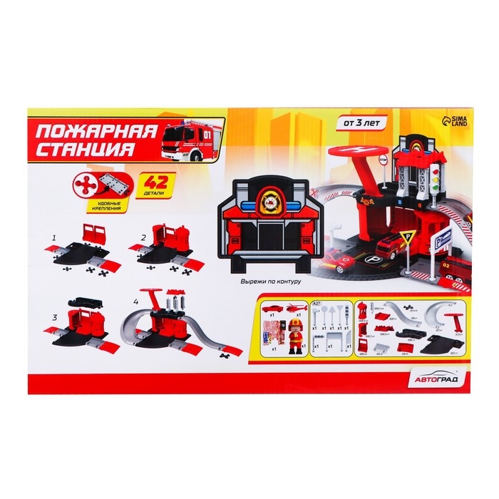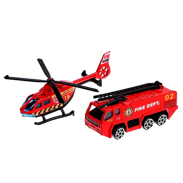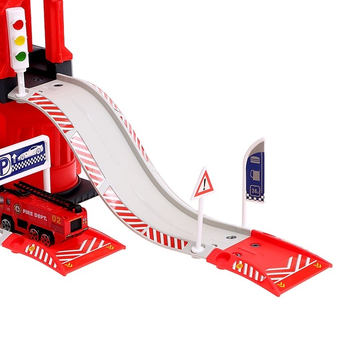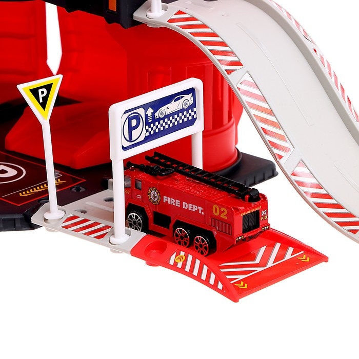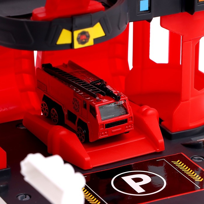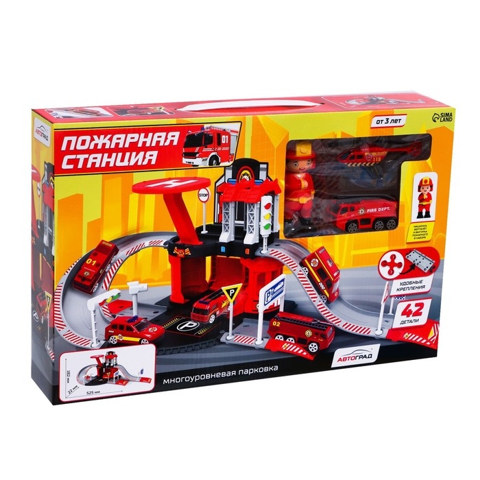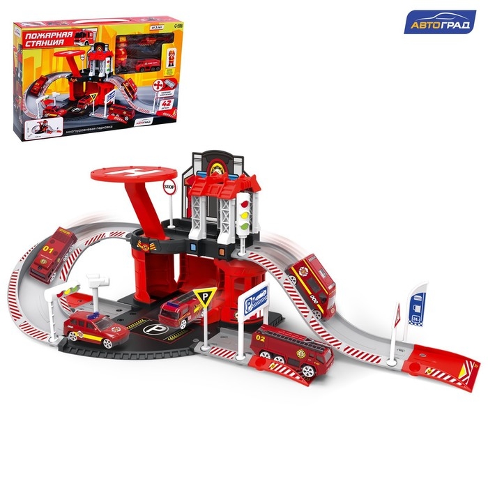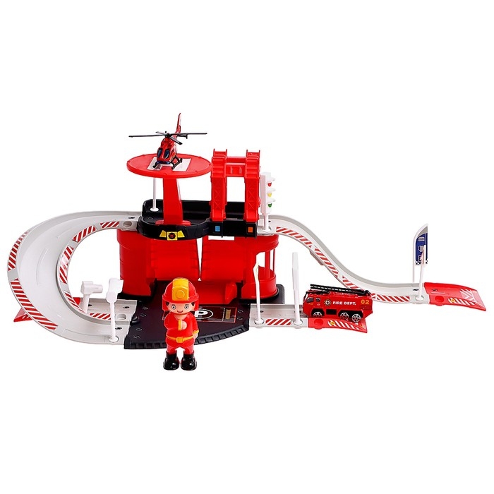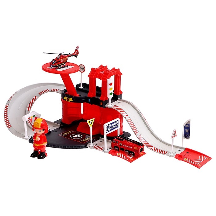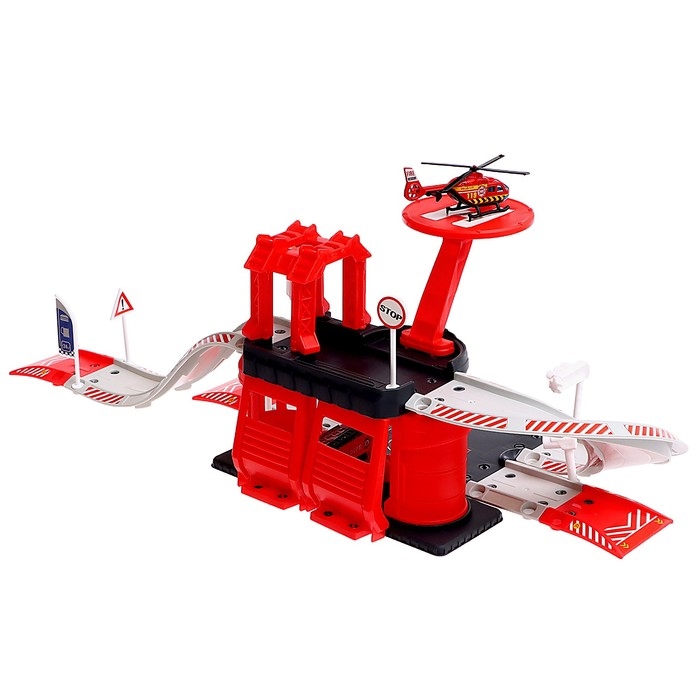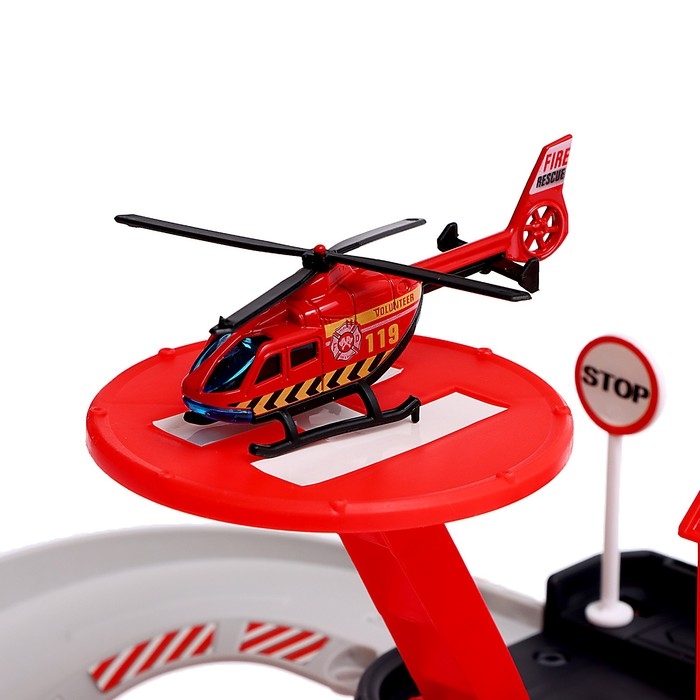 Парковка «Пожарная станция», с металлическими машинкой и вертолётом
