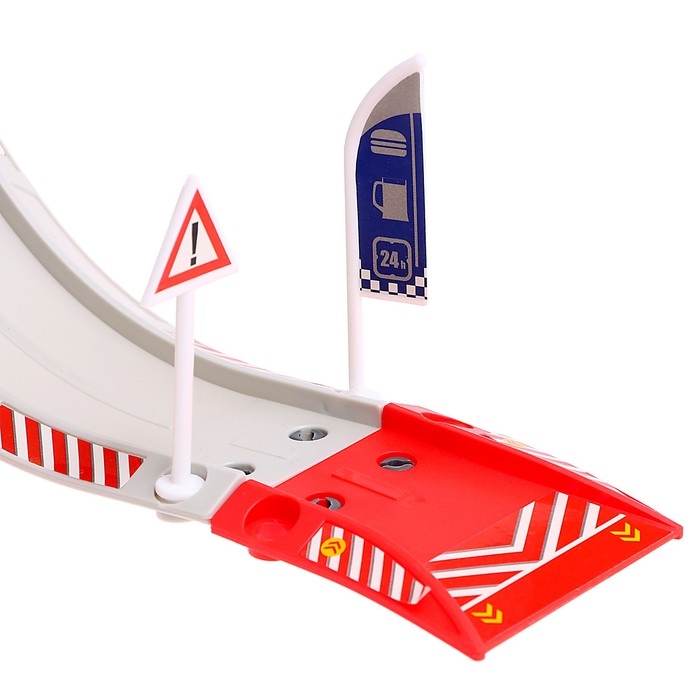 - В комплект входят фрагменты треков с дорожной разметкой и установленными на них дорожными знаками. Поэтому маленький гонщик сможет построить трассу и играть с машинками на парковке.