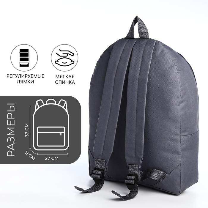 Рюкзак школьный на молнии молодёжный, наружный карман, цвет серый