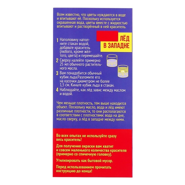 Набор для опытов предназначен для детей старше 4 лет. Дети должны проводить опыты только под присмотром взрослых.