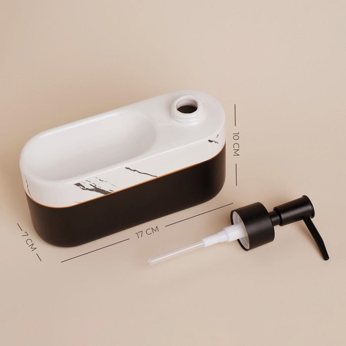 Представляем стильное и функциональное решение для вашей кухни или ванной комнаты — дозатор для мыла Lines с подставкой для губки от Sima-Land Home. Этот аксессуар, выполненный из качественной керамики, станет не только удобным помощником в быту, но и элегантным дополнением интерьера.