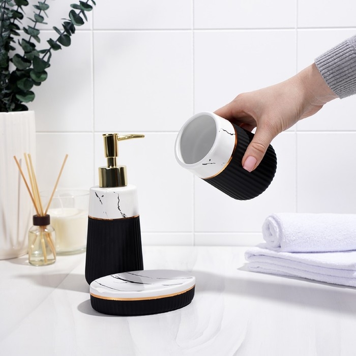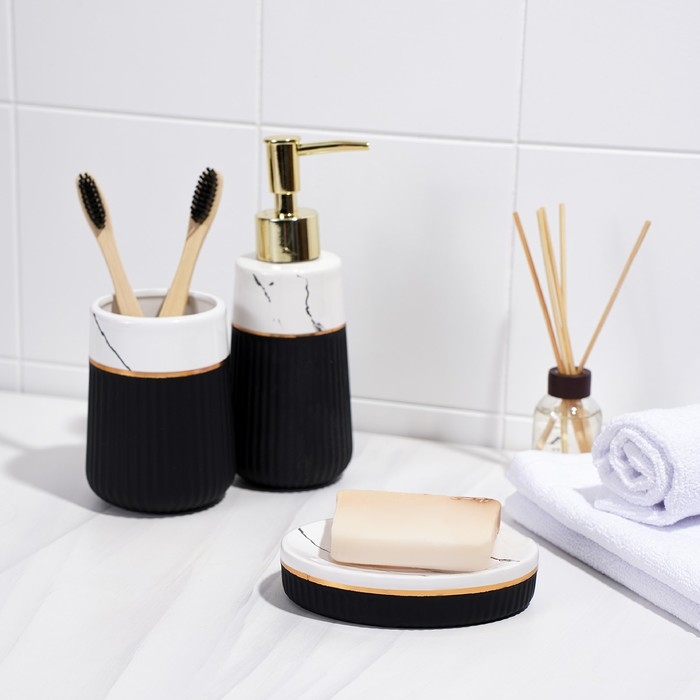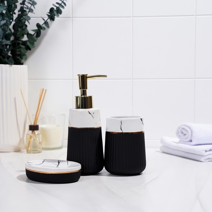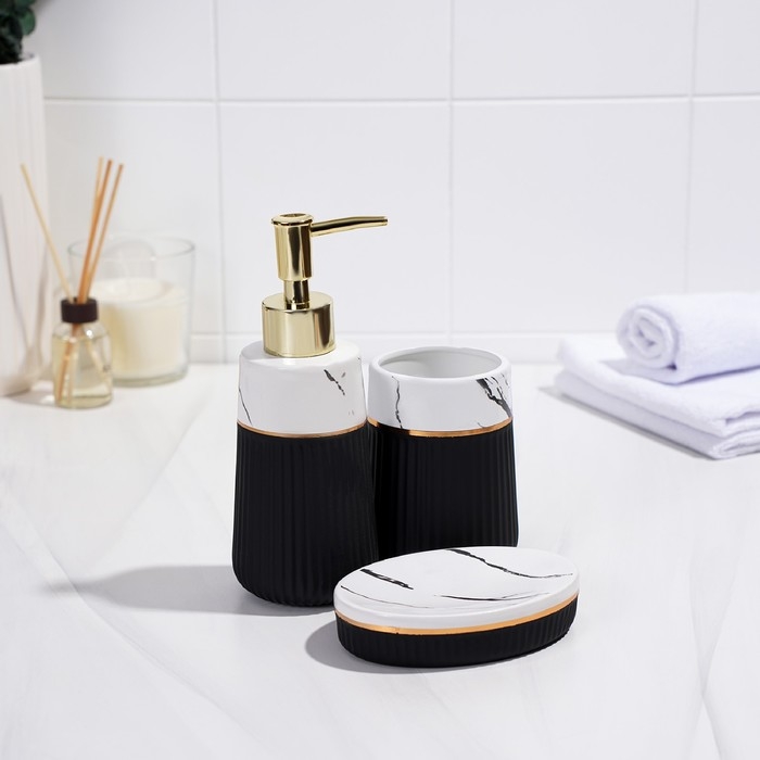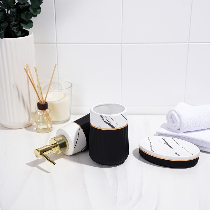 Набор аксессуаров для ванной комнаты SAVANNA Grace, 3 предмета (дозатор для мыла 290 мл, стакан, мыльница), цвет белый мрамор