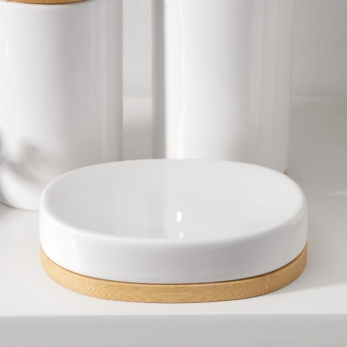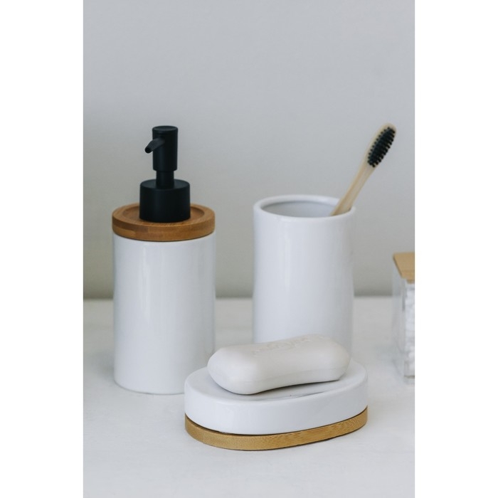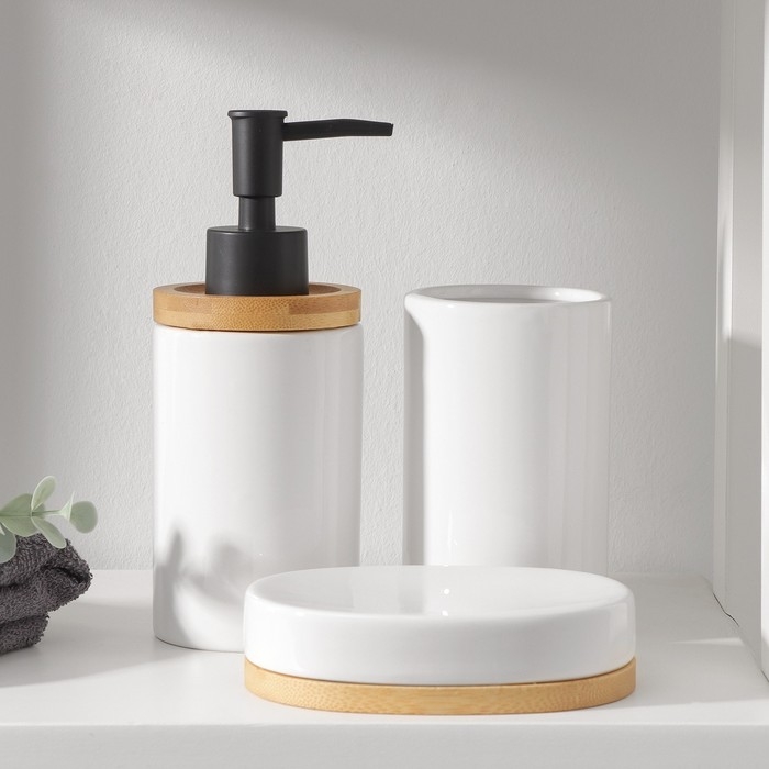 Набор аксессуаров для ванной комнаты SAVANNA «Джуно», 3 предмета (мыльница, дозатор для мыла 280 мл, стакан), цвет белый