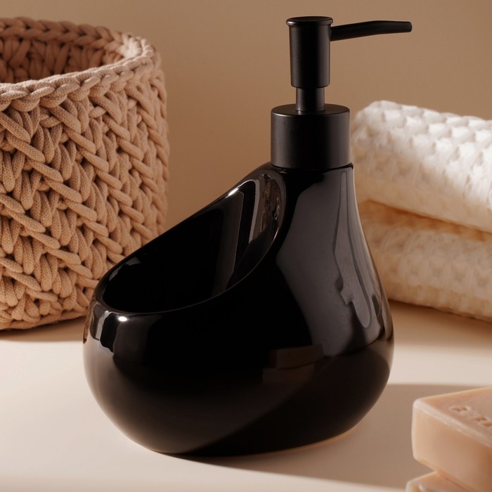 Дозатор для мыла с подставкой для губки Drop, 450 мл, цвет чёрный