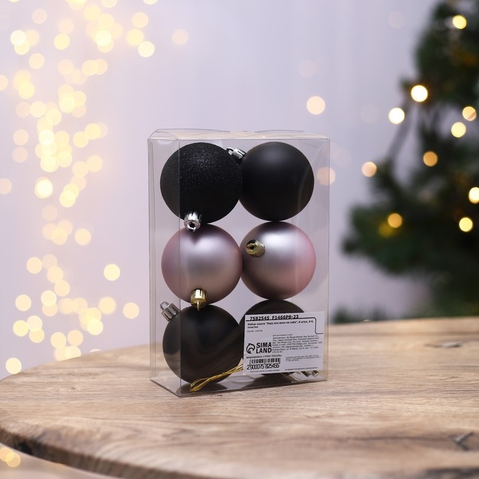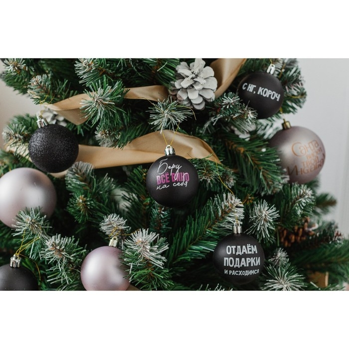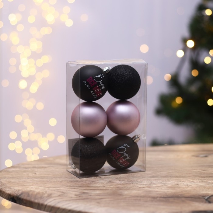 Шары ёлочные новогодние «Беру все вино на себя», на Новый год, пластик, d=6, 6 шт., цвет чёрный и нежно - розовый