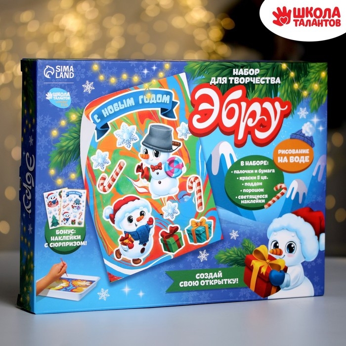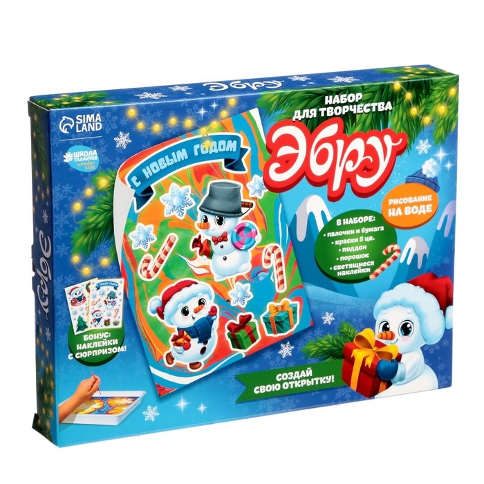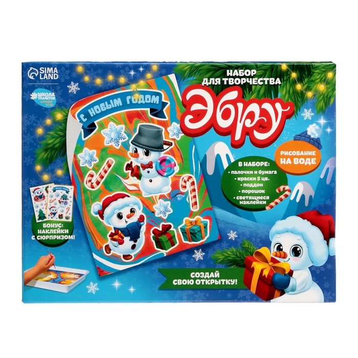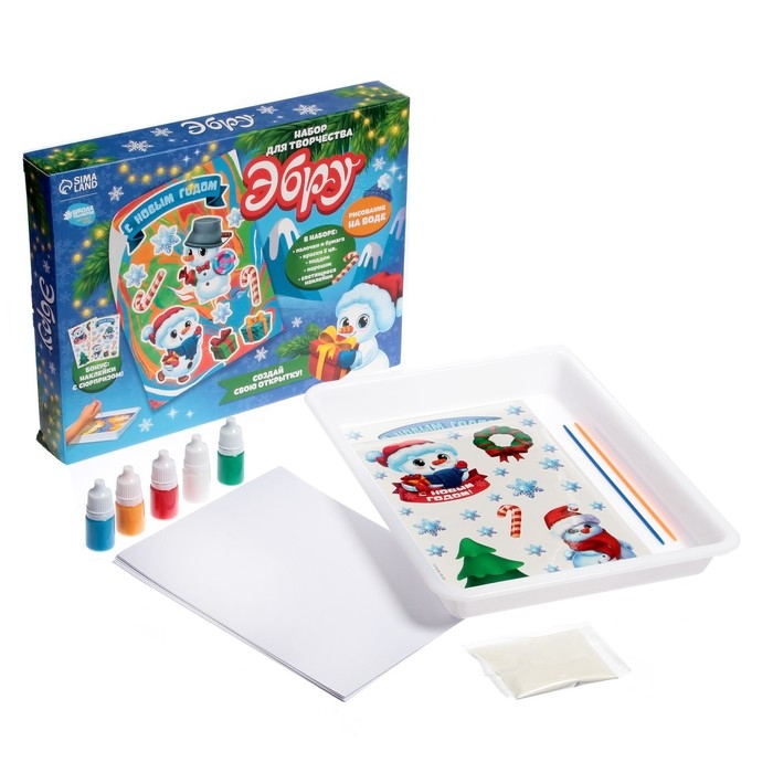 Набор для рисования эбру на новый год «Снеговик», новогодний набор для творчества