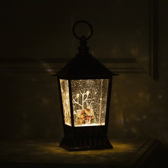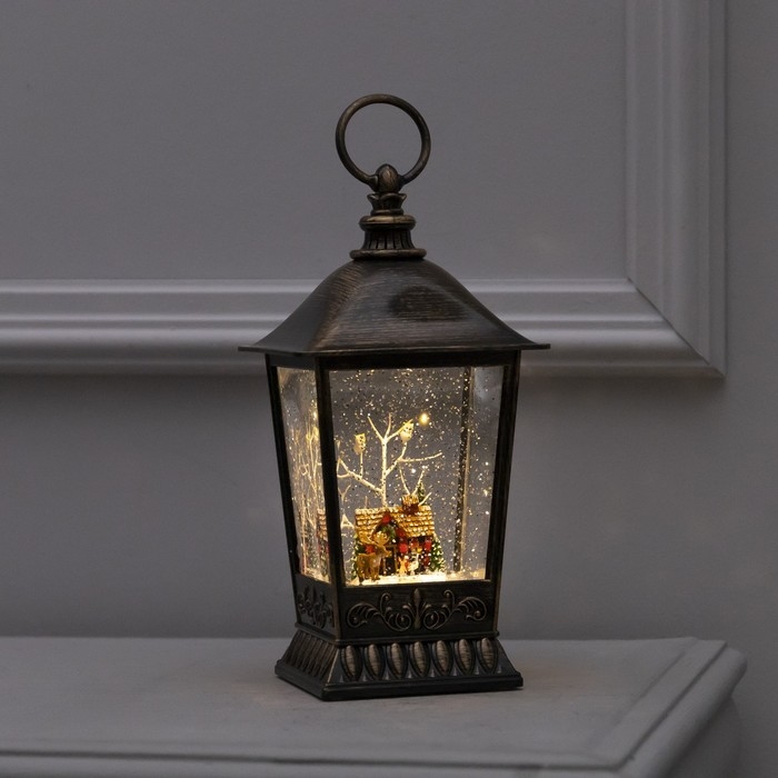 Светодиодная фигура «Фонарь с домиком» 12 × 24 × 12 см, пластик, батарейки ААх3 (не в комплекте), USB, свечение тёплое белое