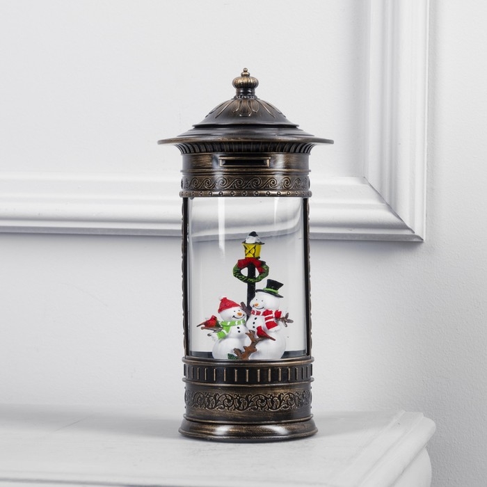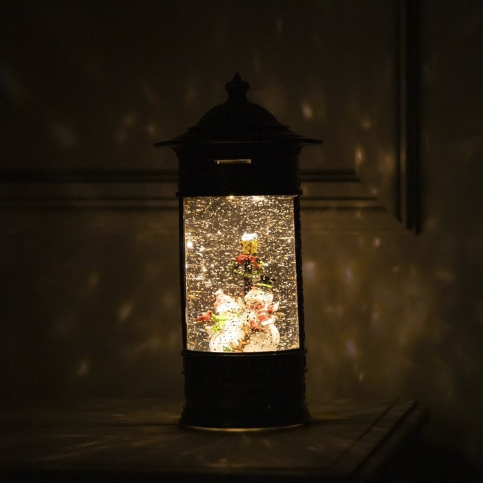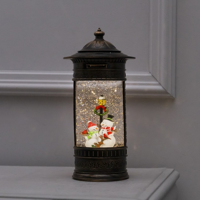 Светодиодная фигура «Фонарь со снеговиками» 14 × 27 × 14 см, пластик, батарейки ААх3 (не в комплекте), USB, свечение тёплое белое