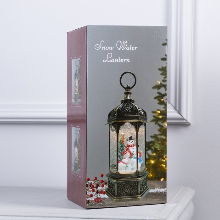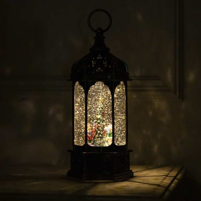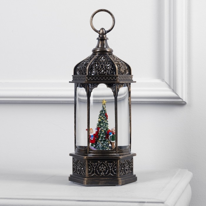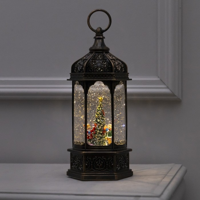 Светодиодная фигура «Фонарь с детьми и ёлкой» 13 × 28.5 × 12 см, пластик, батарейки ААх3 (не в комплекте), USB, свечение тёплое белое