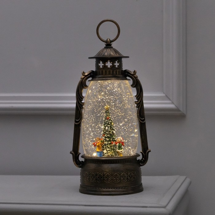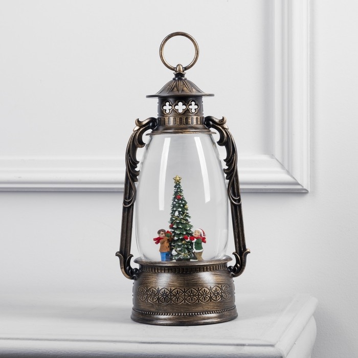 Светодиодная фигура «Фонарь с детьми и ёлкой» 15 × 30 × 12.5 см, пластик, батарейки ААх3 (не в комплекте), USB, свечение тёплое белое
