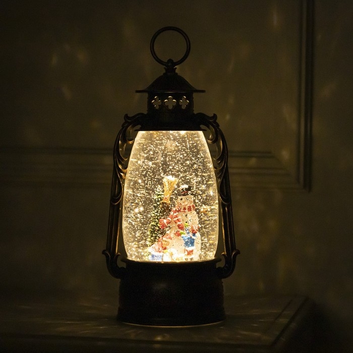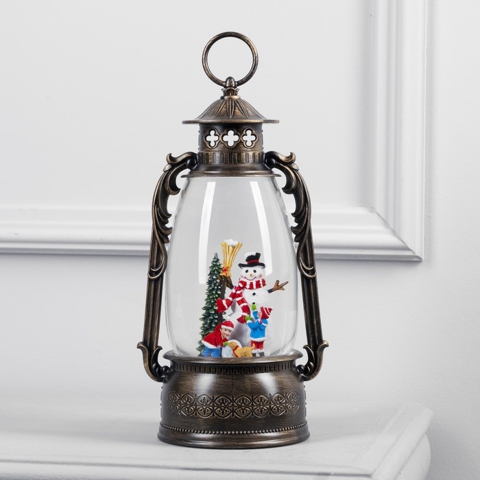 Светодиодная фигура «Фонарь с детьми и снеговиком» 15 × 30 × 12.5 см, пластик, батарейки ААх3 (не в комплекте), USB, свечение тёплое белое
