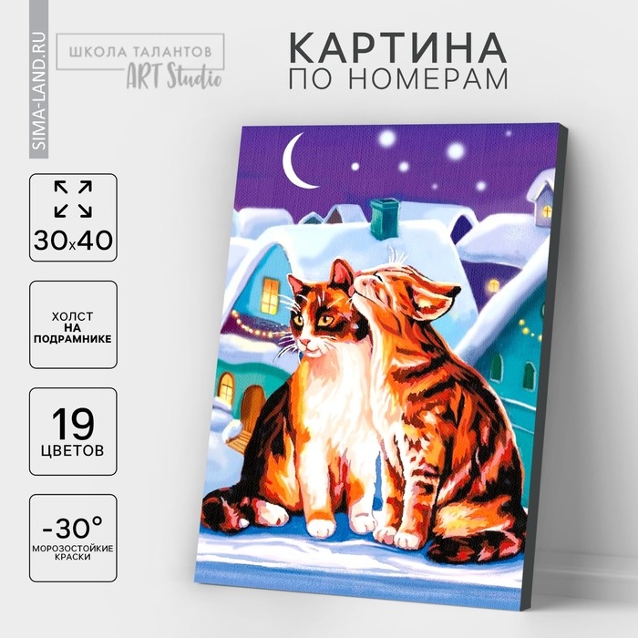 Картина по номерам на новый год на холсте с подрамником «Коты», 30 х 40 см