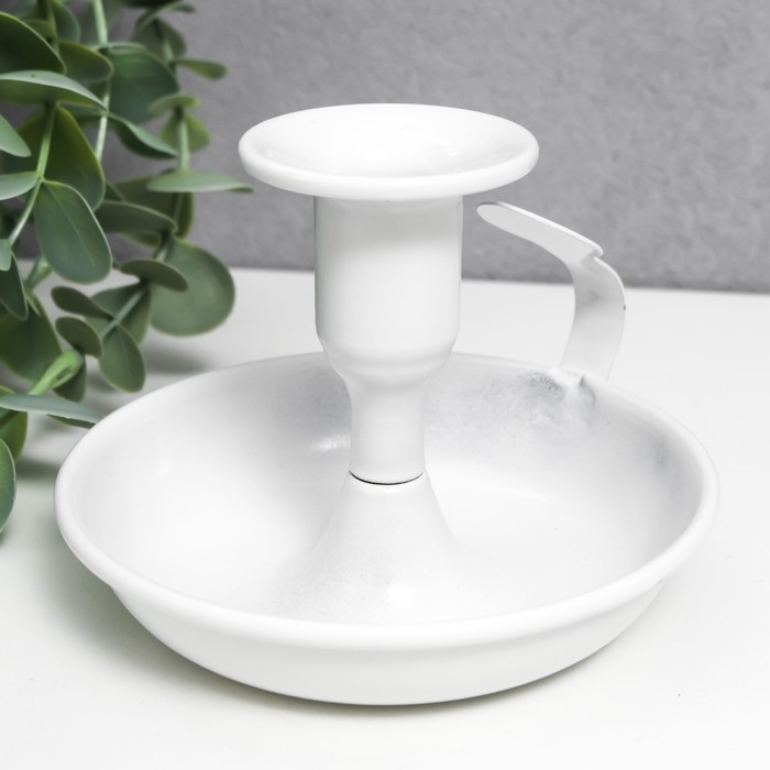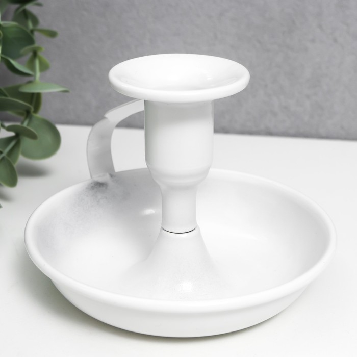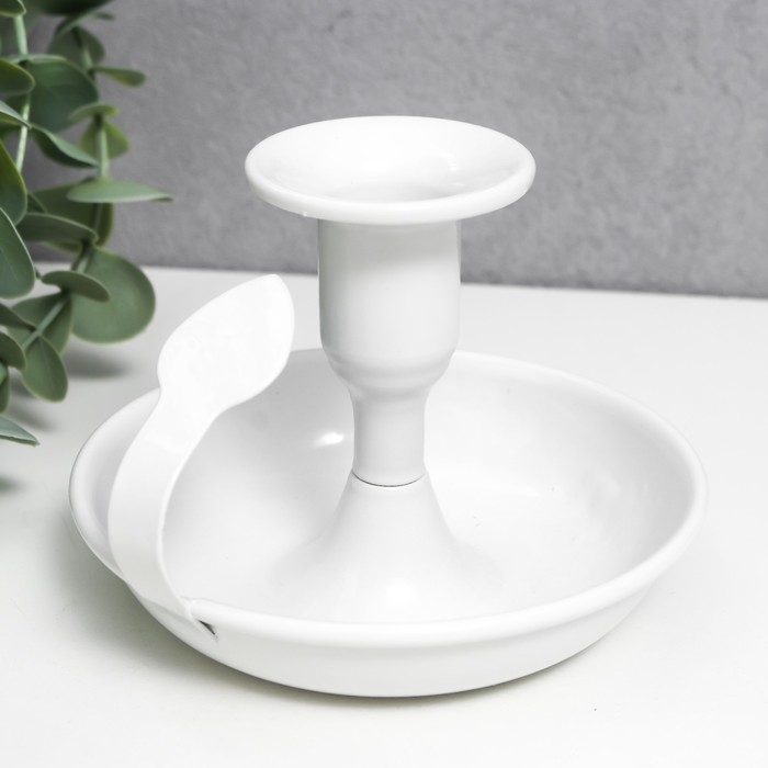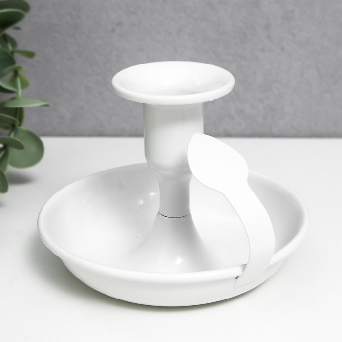 Подсвечник металл на 1 свечу с ручкой "Изгиб" белый 9х10,5х10,5 см