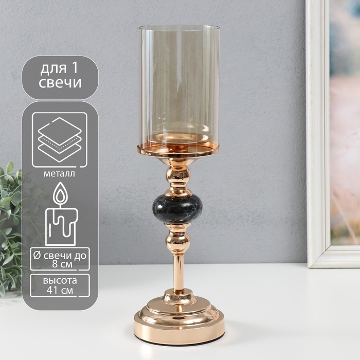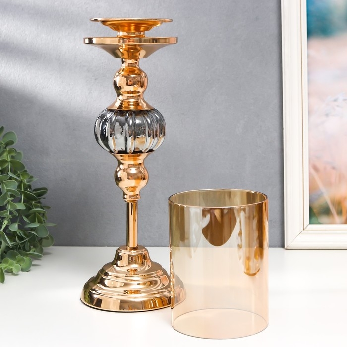 Подсвечник металл, стекло на 1 свечу "Этна" d-8 см, золото 11,5х11,5х38,5 см