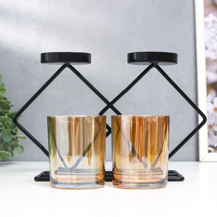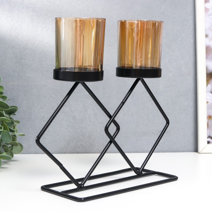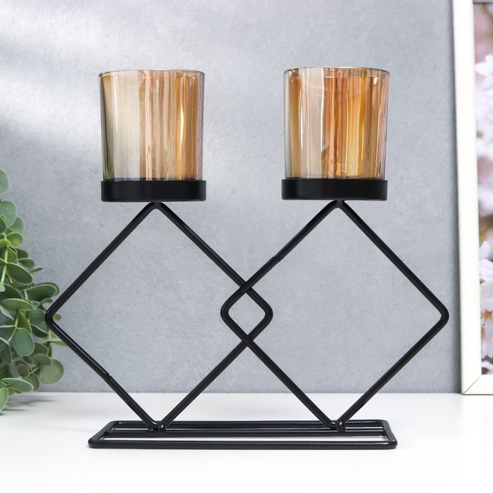 Подсвечник металл, стекло на 2 свечи "Флокс" d-5 см, чёрный 8,5х21х23 см
