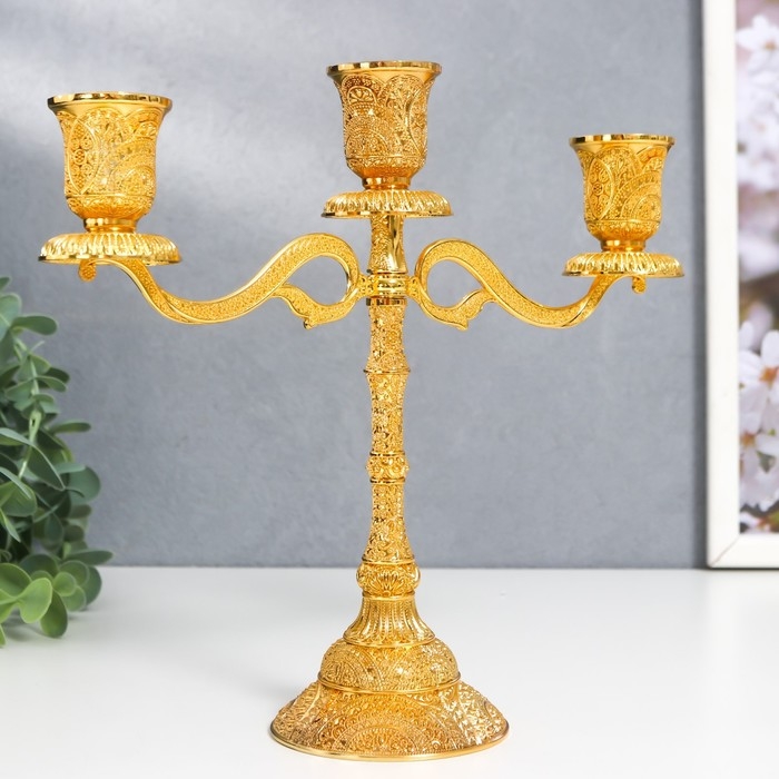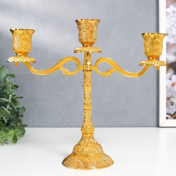 Подсвечник металл на 3 свечи "Раджа" золото 22,5х8х24 см