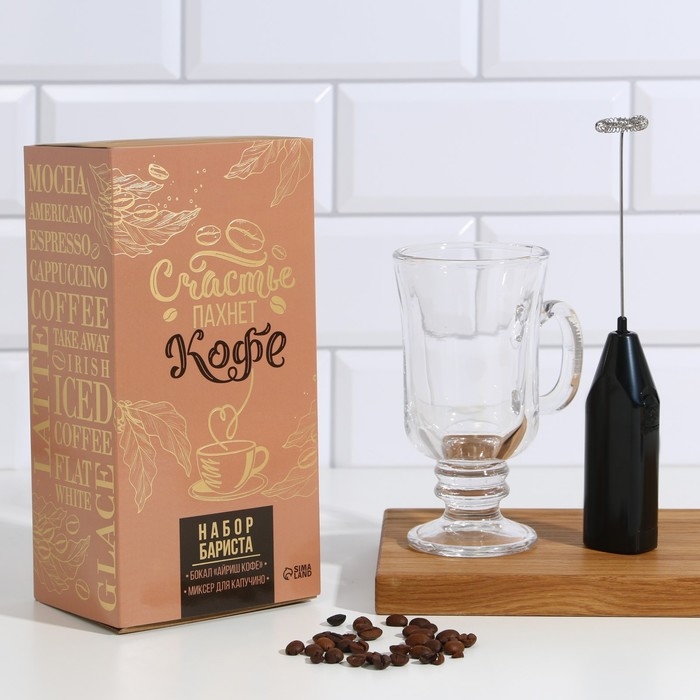 Кружка для кофе 200 мл и капучинатор от батареек «Счастье»