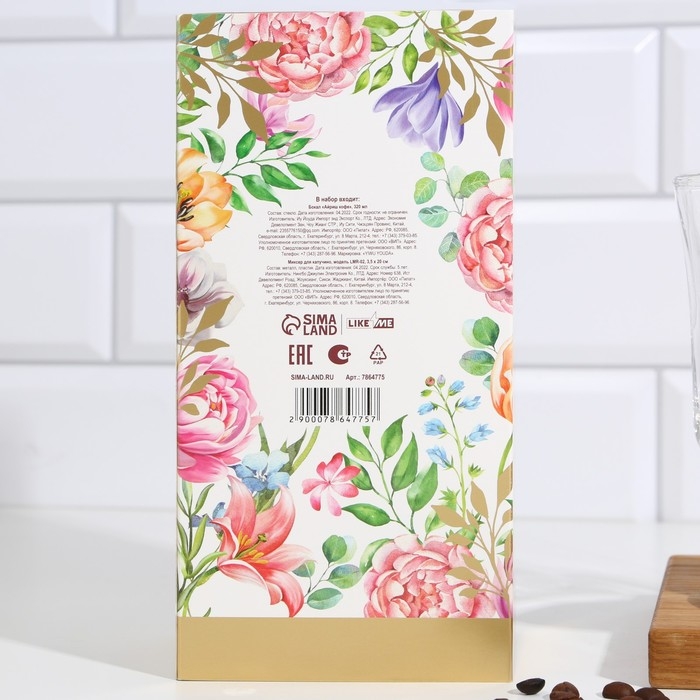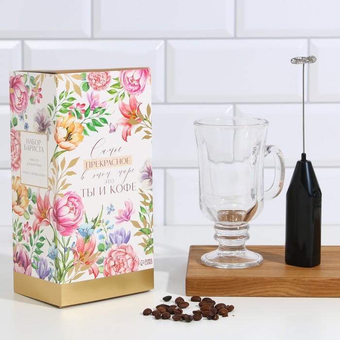 Кружка для кофе 200 мл и капучинатор от батареек «Цветы»