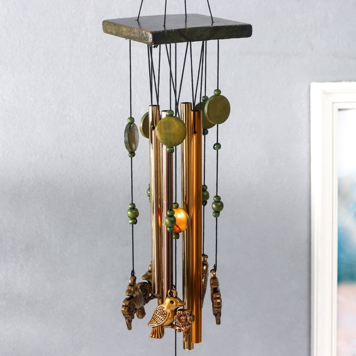 Музыка ветра металл "Птица на ветке с цветком" 4 трубки 55х9,5х9,5 см