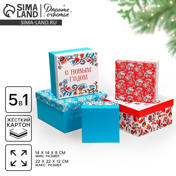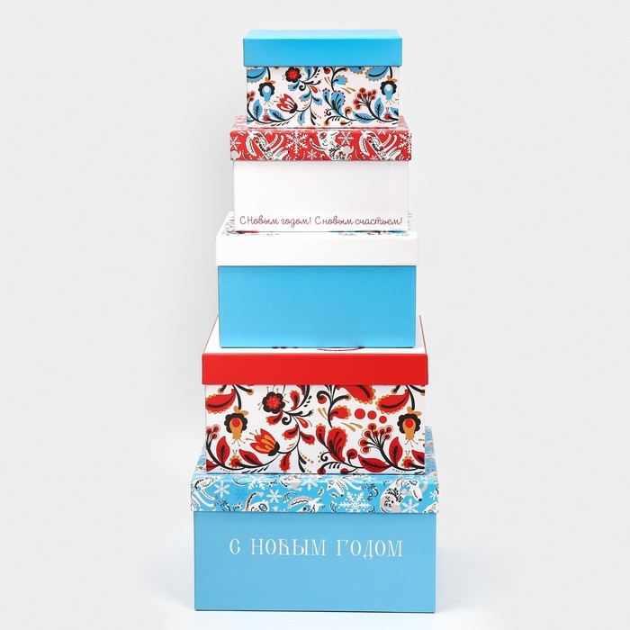 Набор подарочных коробок 5 в 1 «С Новым счастьем», 14 х 14 х 8 - 22 х 22 х 12 см, Новый год