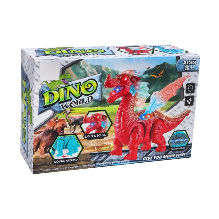 Динозавр «Дракон», работает от батареек, световые и звуковые эффекты, цвет голубой