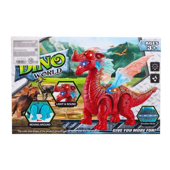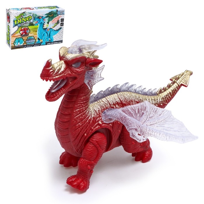 Динозавр «Дракон», работает от батареек, световые и звуковые эффекты, цвет красный