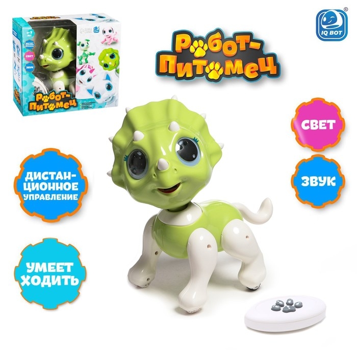Робот динозавр «Питомец» IQ BOT, на пульте управления, интерактивный: звук, свет, на батарейках