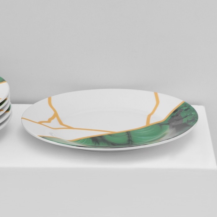 Набор тарелок фарфоровых Доляна «Малахитовая шкатулка», 18 предметов: 6 тарелок d=20 см, 6 тарелок d=25 см, 6 тарелок глубоких 340 мл
