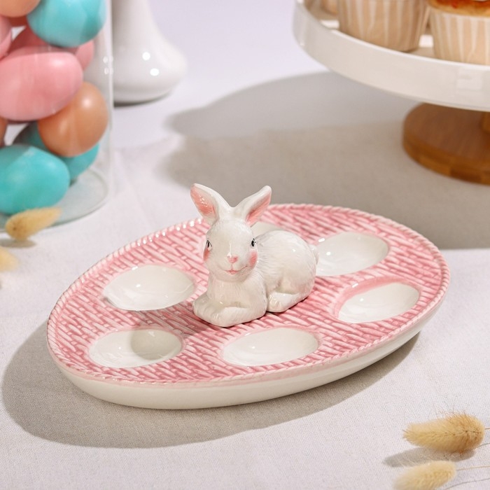 Подставка для яиц станет оригинальным решением для сервировки во время пасхальных торжеств и других пышных праздников. Посуда изготовлена из доломита и украшена забавным кроликом! Оригинальный дизайн изделия делает его гармоничным дополнением к любому варианту оформления стола.