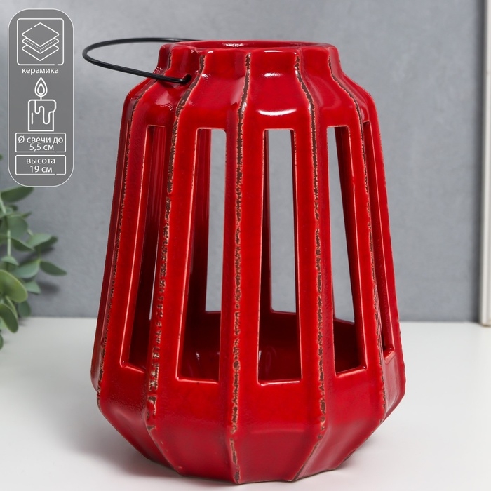 Подсвечник керамика на 1 свечу "Фонарь с вырезами" тёмно-красный 19х14х14 см