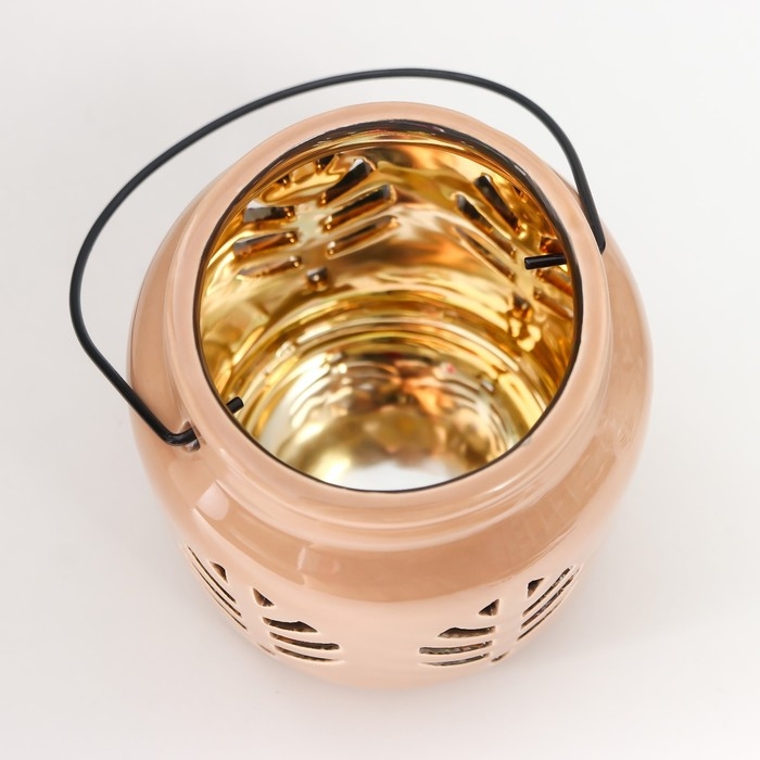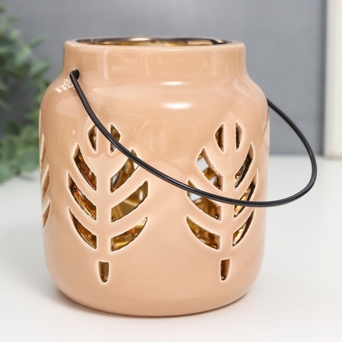 Подсвечник керамика на 1 свечу "Фонарь. Листья" внутри золото МИКС 11,5х9,5х9,5 см
