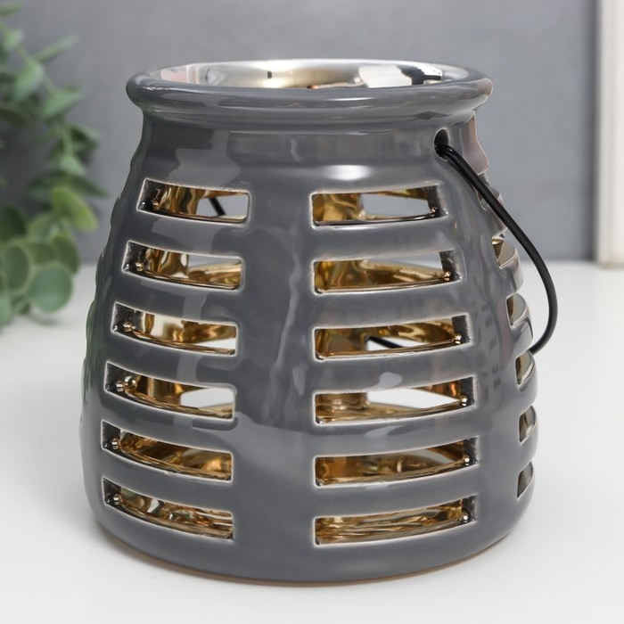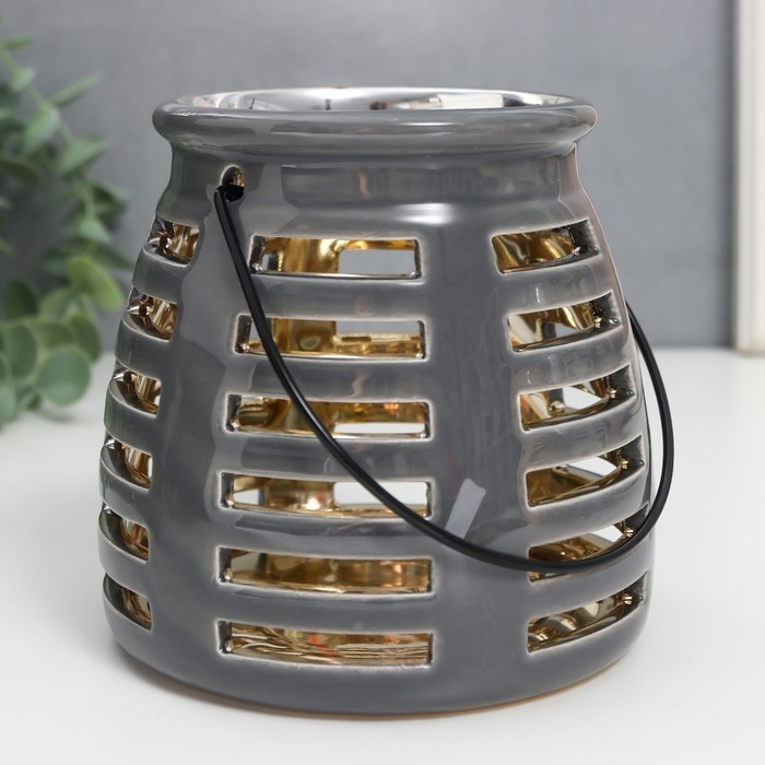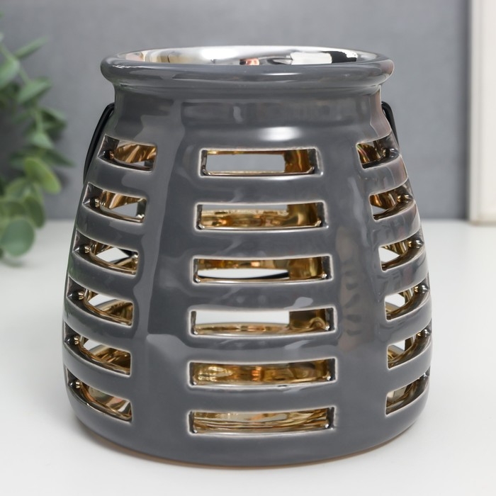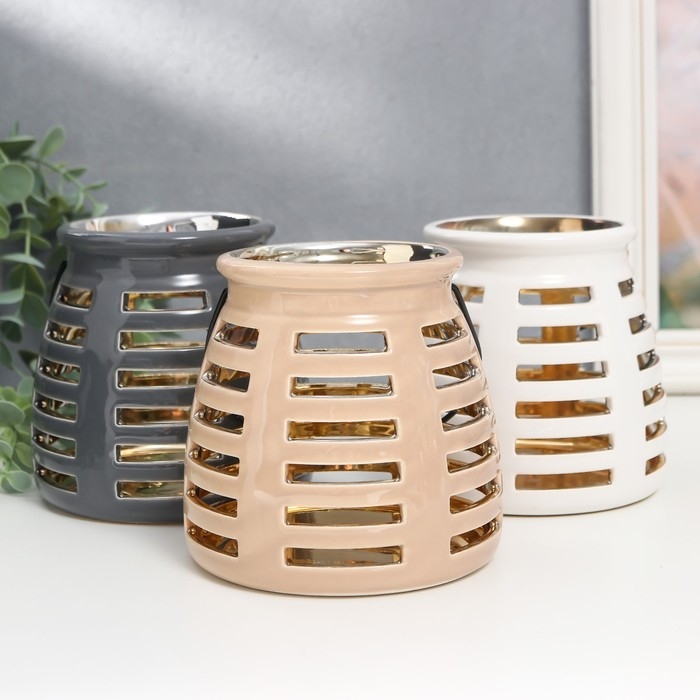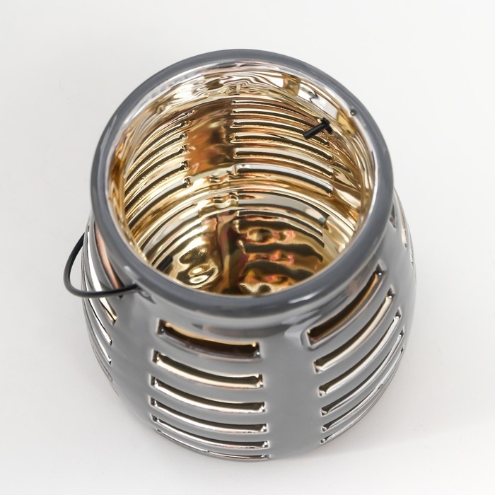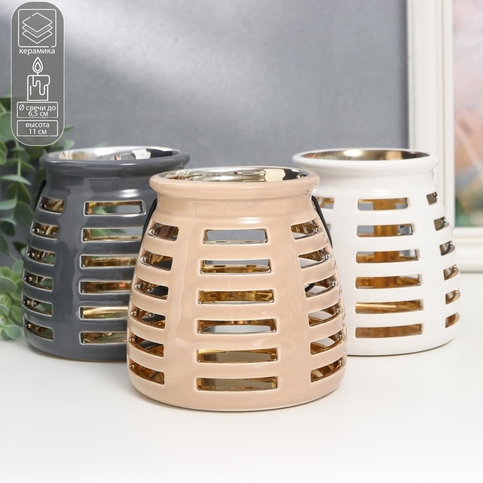Подсвечник керамика на 1 свечу "Фонарь. Полосы" внутри золото МИКС 11,5х11,5х11 см