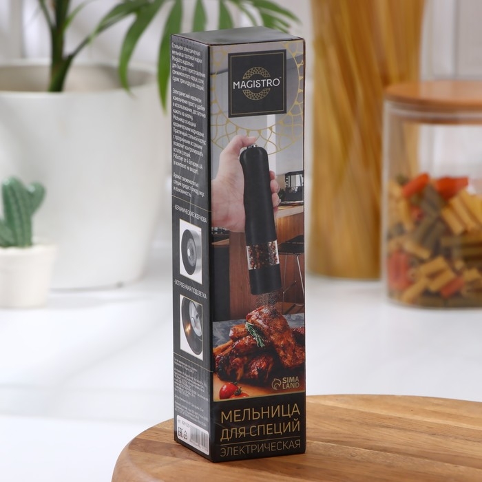 Мельница электрическая для специй Magistro Soft, с подсветкой, цвет чёрный