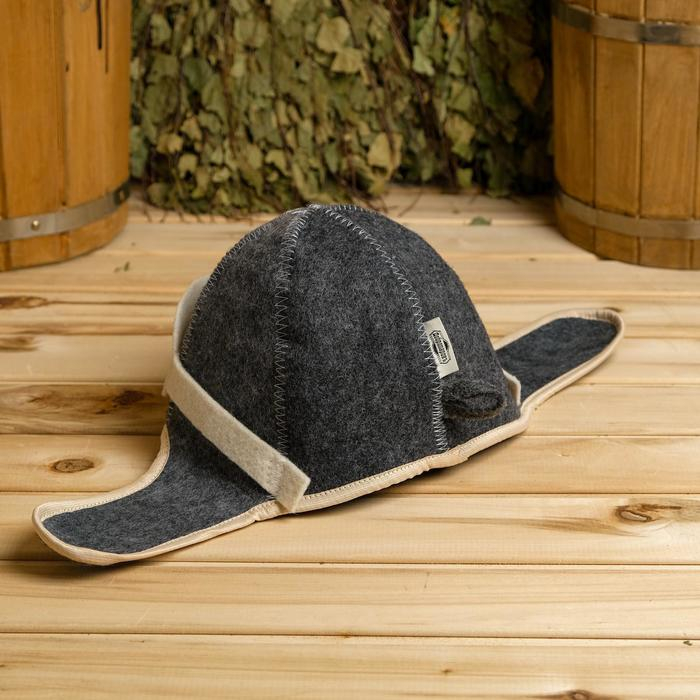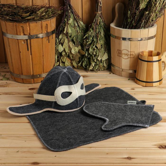 Набор для бани "Летчик" серый: шапка, коврик, рукавица