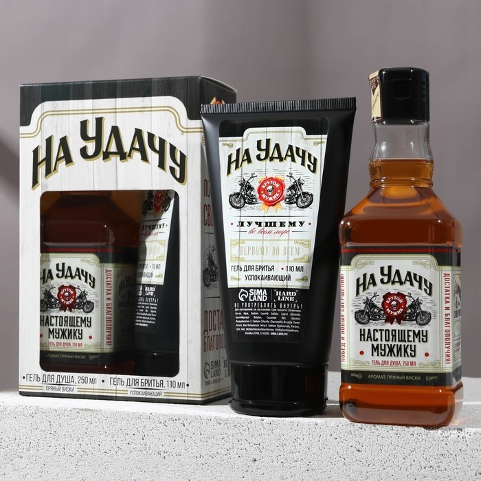 Подарочный набор мужской «На удачу»: гель для душа во флаконе виски, аромат пряный виски, 250 мл; успокаивающий гель для бритья, 110 мл