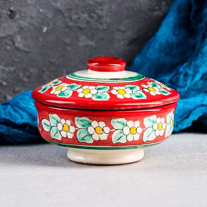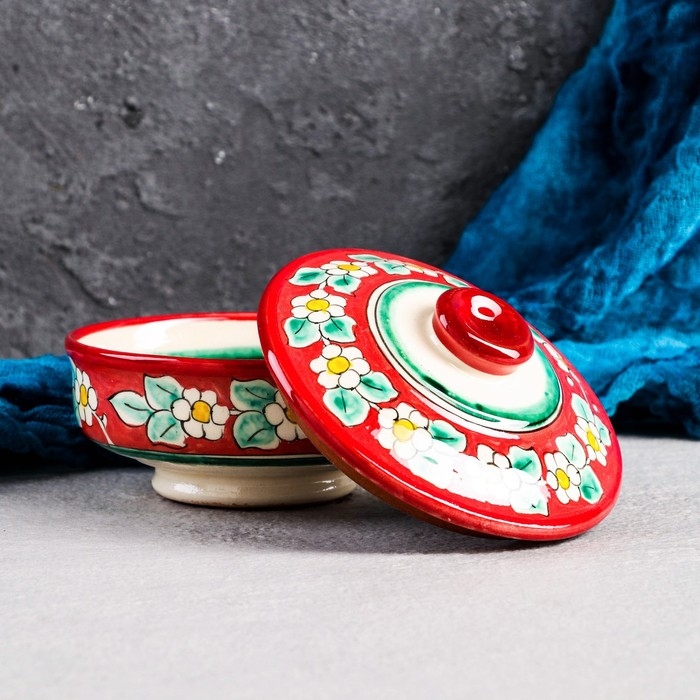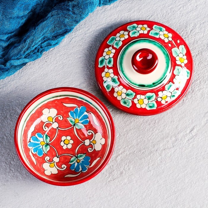 Сахарница Риштанская Керамика "Цветы", 250 мл, красная