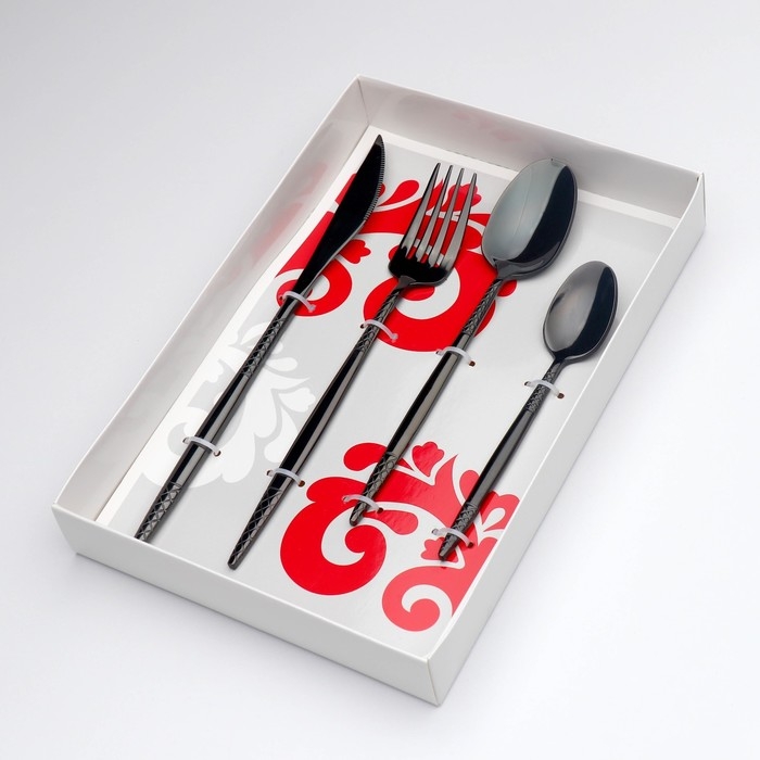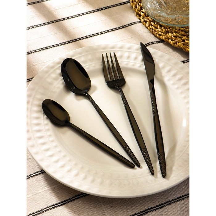 Столовые приборы из нержавеющей стали Доляна «Античность», 4 предмета, цвет чёрный