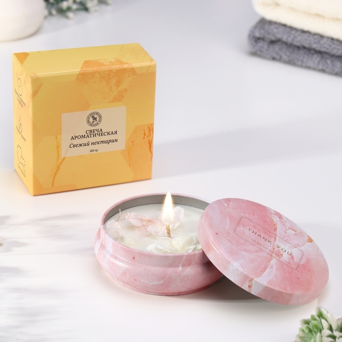 Свеча ароматическая из соевого воска с сухоцветом "Свежий нектарин", 3х8,5 см, 110 г