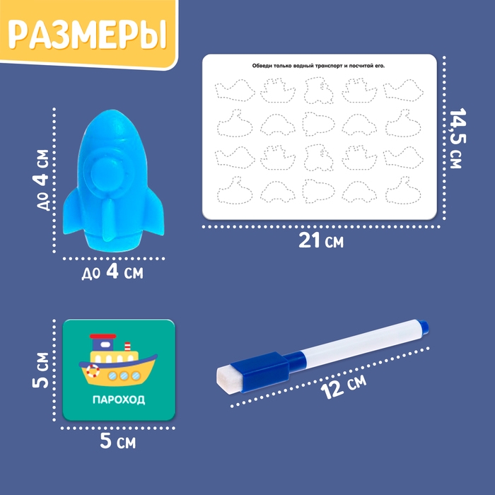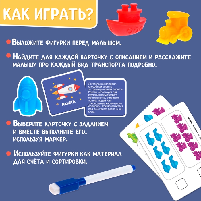 Развивающий набор «Умный транспорт», сортер, задания на карточках, маркер