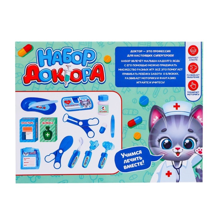 С набором доктора у ребёнка будет всё нужное, чтобы лечить кукол и плюшевых зверей. Разнообразные предметы сделают знакомство с профессией врача увлекательным, а яркие эффекты добавят игре реалистичности.