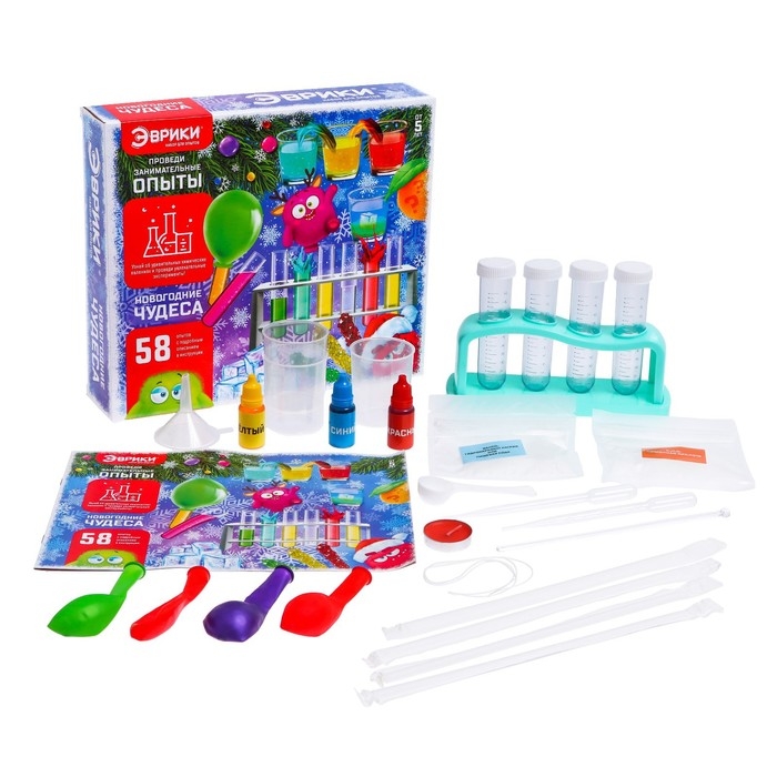 Набор для опытов «Эврики» — простые эксперименты, которые помогут продемонстрировать свойства различных химических элементов. Ребёнок сам проведёт 58 опытов и удивит друзей!