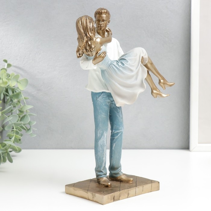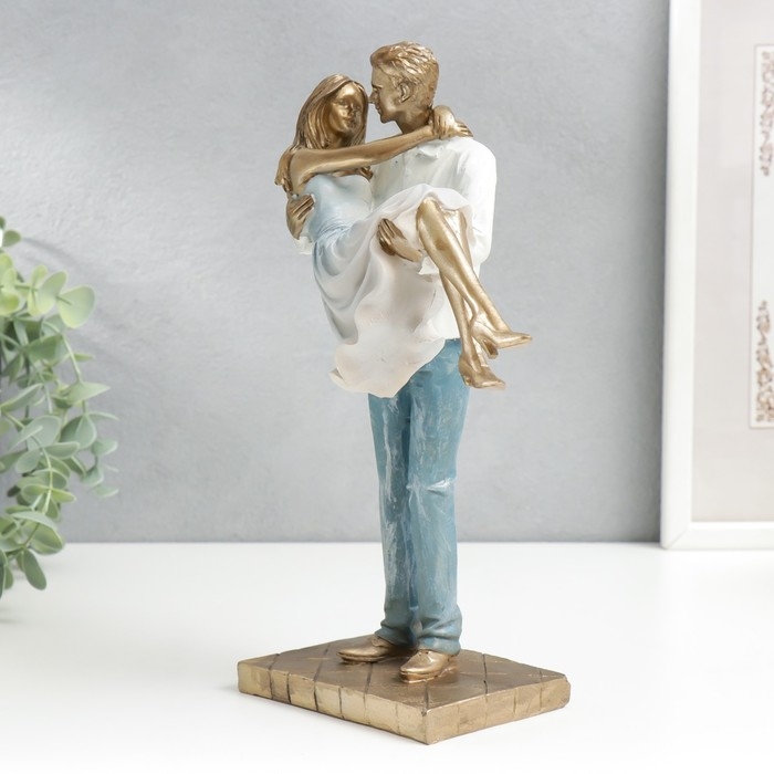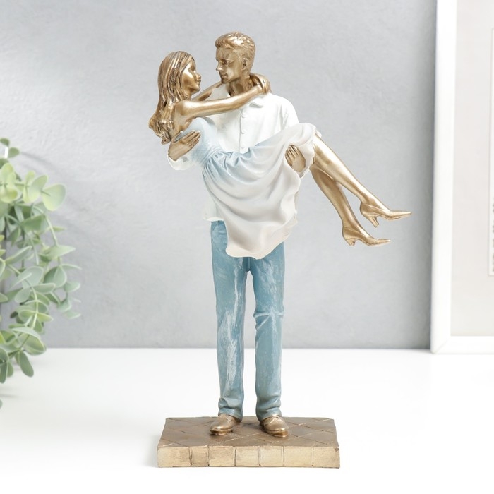 Сувенир полистоун "Влюблённые. Буду носить тебя на руках" бело-голубой под бронзу 26х9х16 см