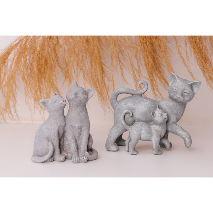 Сувенир полистоун "Кот и кошка - умывание" серый 15х8х13 см
