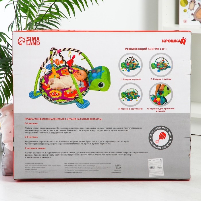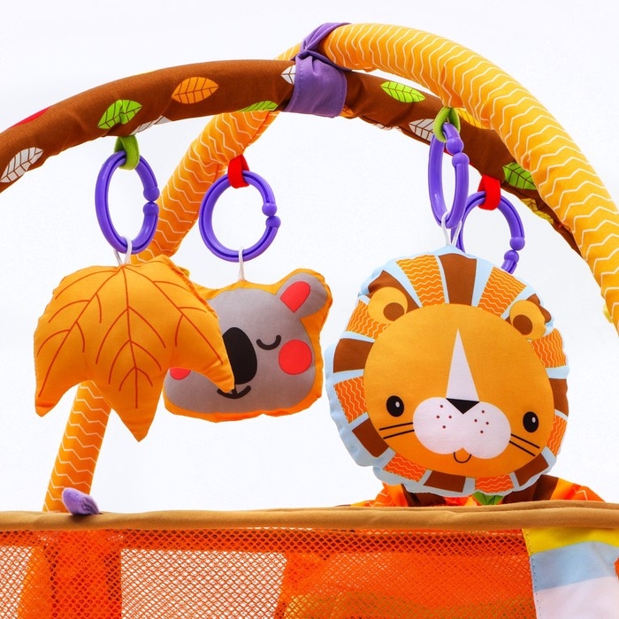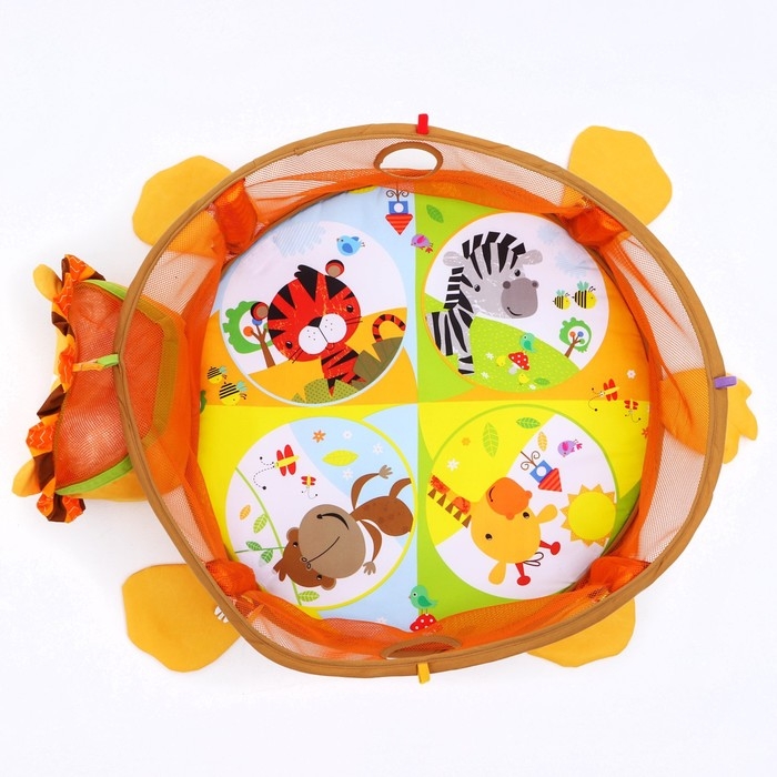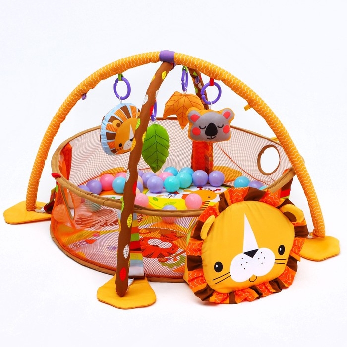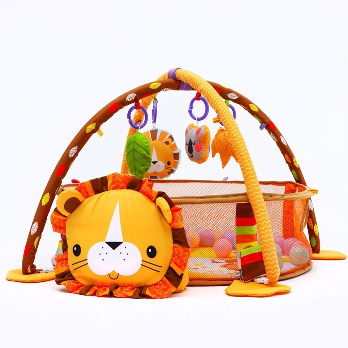 Развивающий коврик 3 в 1 «Лев», 68x68 см, 30 цветных шариков, 4 игрушки, Крошка Я