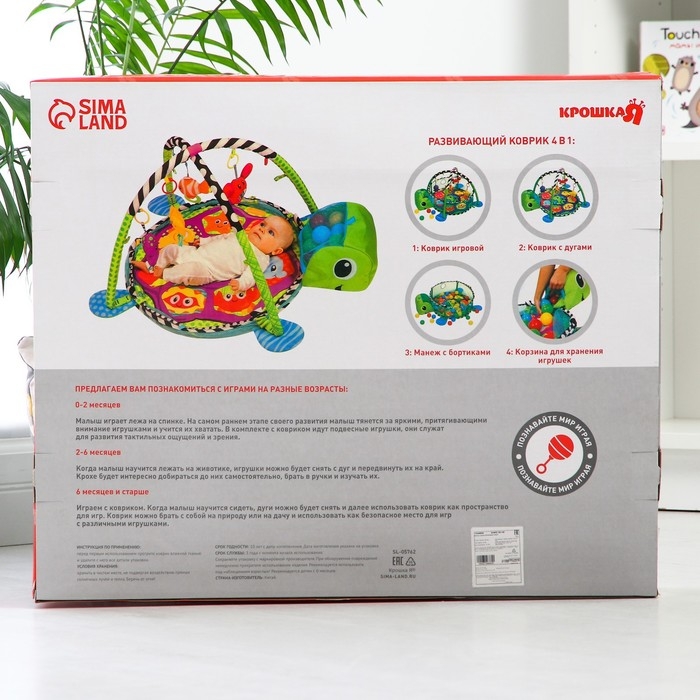 Развивающий коврик 3 в 1 «Енот», 68х68 см, 30 цветных шариков, 5 игрушек, Крошка Я